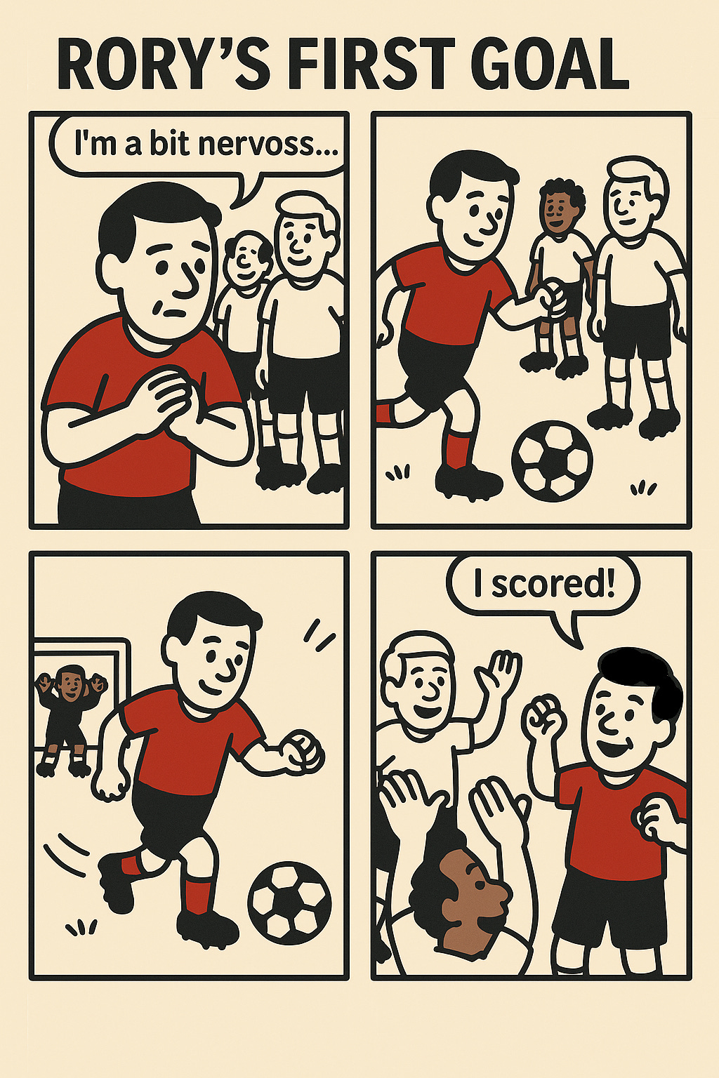 So if Rory can go from BBC studios to back of the net, while facing Parkinson’s with courage and humour, what’s stopping you?
